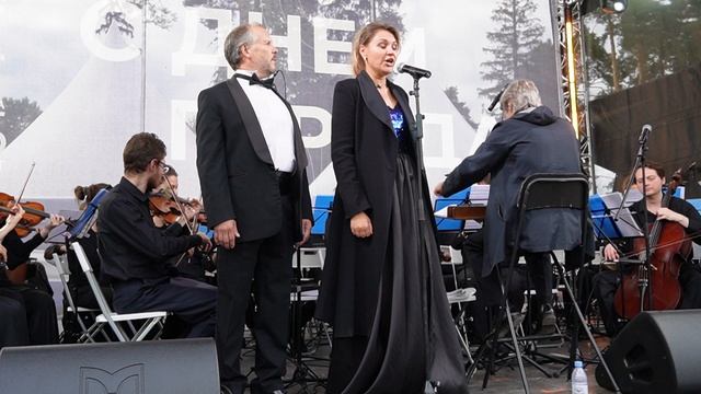 Елена Терентьева и Максим Сажин исполняют Застольную из оперы "Травиата". Дирижёр — Виктор Луценко