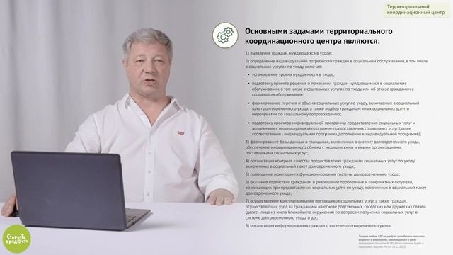 Ролик 16. Территориальный координационный центр. Видео-справочник по Типовой модели Системы долговременного ухода. БФ "Старость в радость". 2023 г.