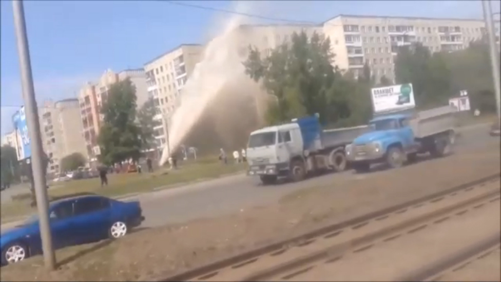 Барнаул. Фонтан кипятка поливает дом (20.05.2016 г.)
