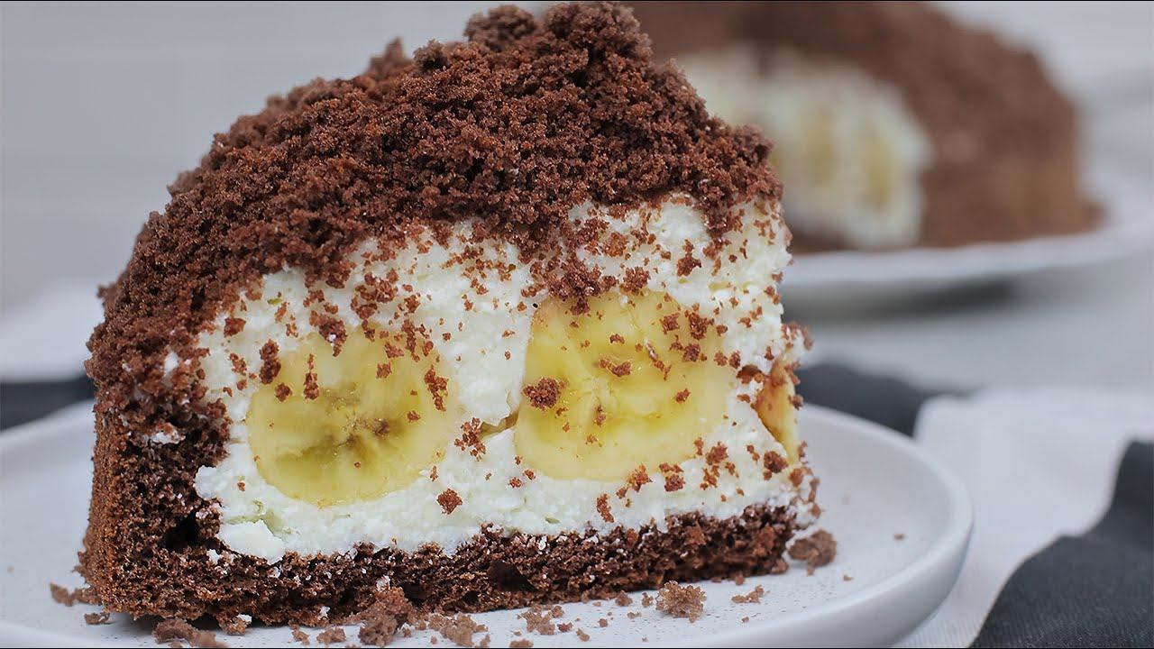 Торт "Норка Крота". Шоколадный бисквит, бананы и творожное суфле
