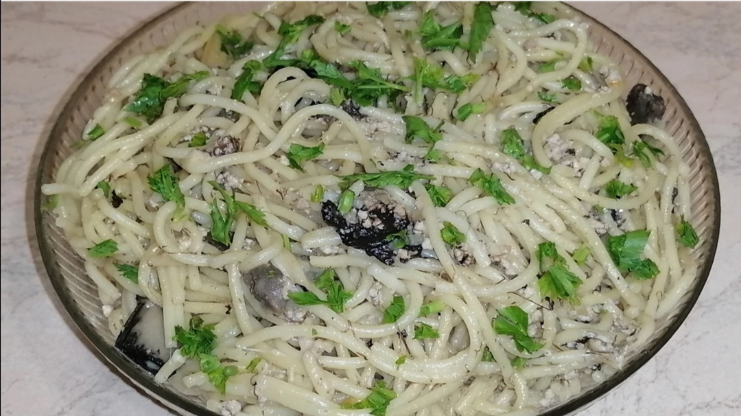 Спагетти с курицей и лесными грибами в сливочном соусе