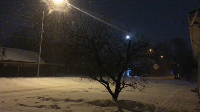 Идет снег. Ночь. Тишина. Минеральные Воды, улица Тбилисская, 25 февраля 2025 года.