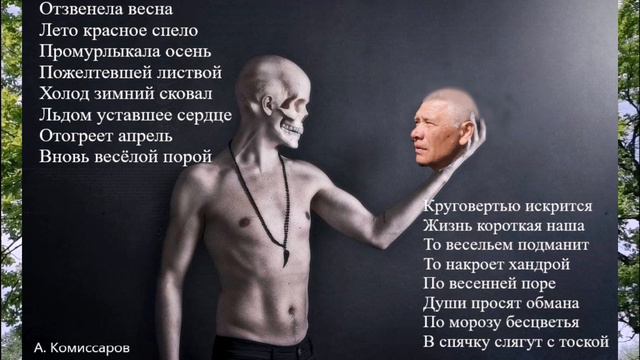 Круговерть - стихотворение автор исполнитель Александр Комиссаров Отзвенела весна Лето красное спело Промурлыкала осень Пожелтевшей листвой Холод зимний сковал Льдом уставшее сердце Отогреет апрель Вновь весёлой порой Круговертью искрится Жизнь короткая наша То весельем подманит То накроет хандрой По весенней поре Души просят обмана По морозу бесцветья В спячку слягут с тоской 12 06 24