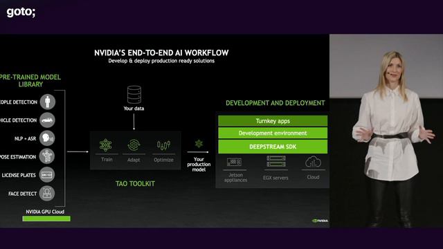 This presentation was recorded at GOTO Copenhagen 2021. #GOTOcon #GOTOcph http://gotocph.com Ekaterina Sirazitdinova - Data Scientist for Computer Vision, Video Analytics & Deep Learning at NVIDIA ABSTRACT Larger and more complex Vision AI networks enable better accuracy and precision since they are able to encode more information. This increase in size and complexity is, in turn, naturally associated with trained AI models having lower throughput and larger memory requirements. With that, real-time AI inference is becoming a new great challenge in intelligent video analytics. NVIDIA’s approach at solving this problem relies on two major components: first, tuning AI models for performance depending on the target deployment hardware platform, and, second, optimizing the use of available GPUs. From this talk, you will learn how to leverage this approach to achieve real-time inference performance by using software tools like DeepStream SDK, TensorRT and Triton Inference Server [...] TIMECODES 00:00 Intro 01:23 Why intelligent video analytics? 06:27 Challenges with intelligent video analytics 08:49 Tips & tricks for efficient AI video analytics 09:00 Transfer learning 11:03 Data augmentation 12:19 Automatic mixed precision (AMP) 14:03 Quantization 16:18 Network pruning 18:10 Network graph optimizations 19:51 Kernel auto-tuning 20:52 Dynamic tensor memory upon inference 21:33 Multistream concurent execution 22:04 Free NVIDIA products designed to make your AI App efficient 23:10 NVIDIA's end-to-end AI workflow 25:32 TAO toolkit 28:45 high performance pre-trained vision AI models 30:02 Enabling beyond pre-trained AI models 30:48 Achieving state of the art accuracy for public datasets 31:10 NVIDIA TensorRT 32:48 TensorRT workflow 33:56 Triton inference server 37:12 DeepStream SDK 38:57 DeepStream application architecture 41:23 Pipelin efficiency with zero memory copies 42:19 NVIDIA graph composer 42:32 DeepStream video demo 43:54 Summary 45:18 Developer resources 46:09 Outro Download slides and read the full abstract here: https://gotocph.com/2021/sessions/1786/best-practices-for-real-time-intelligent-video-analytics RECOMMENDED BOOKS Magnus Ekman • Learning Deep Learning • https://amzn.to/3D1d8Nz Phil Winder • Reinforcement Learning • https://amzn.to/3t1S1VZ Kelleher & Tierney • Data Science (The MIT Press Essential Knowledge series) • https://amzn.to/3AQmIRg Lakshmanan, Robinson & Munn • Machine Learning Design Patterns • https://amzn.to/2ZD7t0x Lakshmanan, Görner & Gillard • Practical Machine Learning for Computer Vision • https://amzn.to/3m9HNjP Aurélien Géron • Hands-On Machine Learning with Scikit-Learn, Keras & TensorFlow • https://amzn.to/2XZaQy8 https://twitter.com/GOTOcon https://www.linkedin.com/company/goto- https://www.facebook.com/GOTOConferences #NVIDIA #AI #ML #DataScience #AINetworks #ArtificialIntelligence #MachineLearning #DeepStream #DeepStreamSDK #TensorRT #NVIDIATensorRT #Triton #TritonInferenceServer #AIAnalytics #AIVideo #AIVideoAnalytics #DataAugmentation #AMP #AutomaticMixedPrecision Looking for a unique learning experience? Attend the next GOTO conference near you! Get your ticket at https://gotopia.tech Sign up for updates and specials at https://gotopia.tech/newsletter SUBSCRIBE TO OUR CHANNEL - new videos posted almost daily. https://www.youtube.com/user/GotoConferences/?sub_confirmation=1