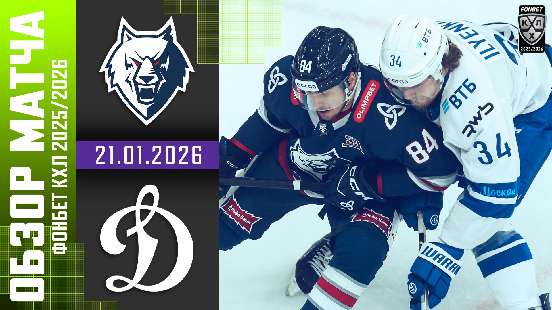 НЕФТЕХИМИК – ДИНАМО МОСКВА | Обзор матча Фонбет КХЛ сезон 2025/2026 | 21.01.2026