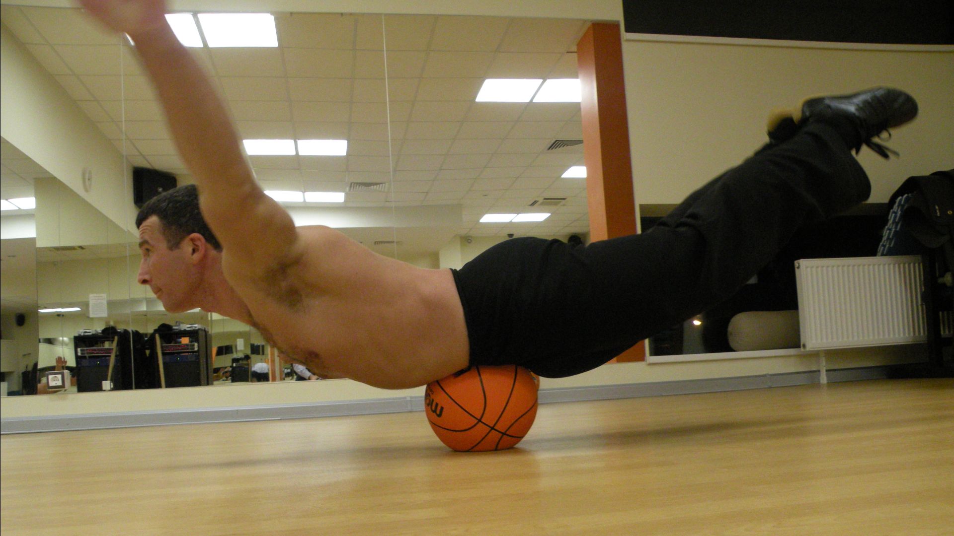 Зарядка. Прокатывание спины на мяче лёжа.