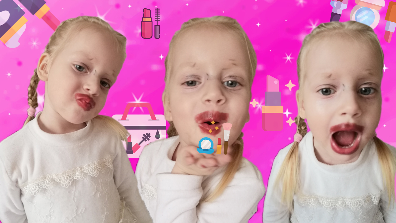 Вы только посмотрите! Эта маленькая девочка уже умеет пользоваться косметикой! Как классно у нее получилось!