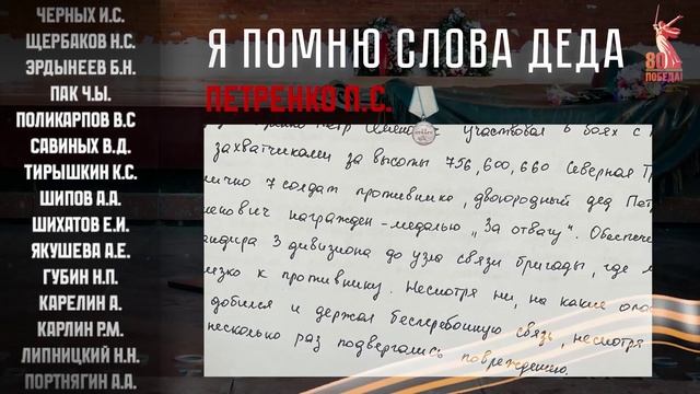Я помню слова деда! Письма солдат о своих предках. Письмо 26. Петренко