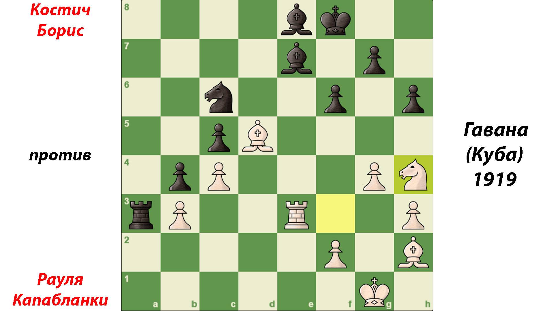 Хосе Рауль Капабланка против Костича Бориса, Гавана (Куба), 1919.