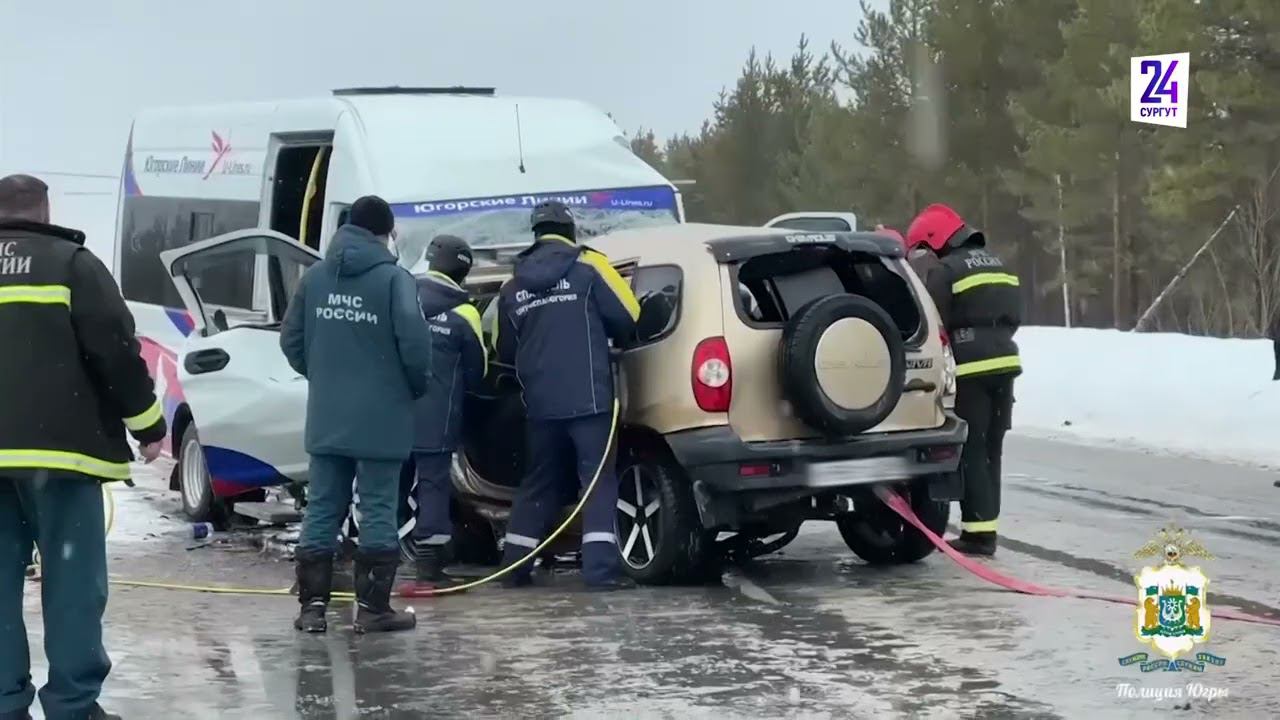 Крупное ДТП в Сургутском районе. Нива влетела в автобус, 13 человек пострадали, есть погибшие