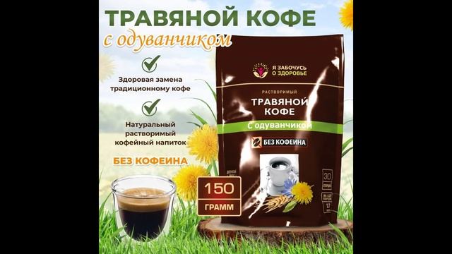 Травяной кофе с одуванчиком 150 грамм без кофеина, 100% натуральный растворимый напиток ячменный с ц