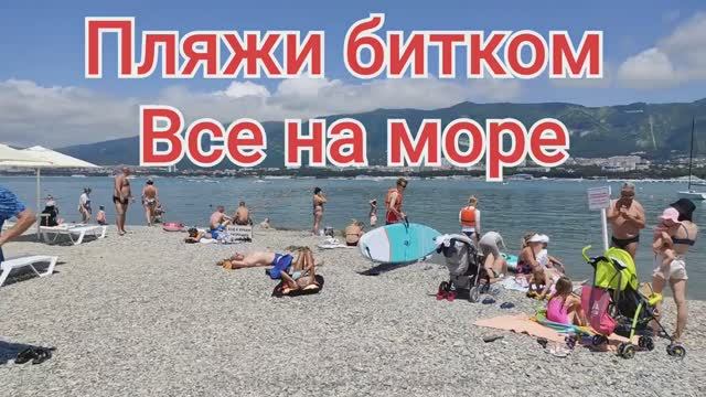 В Геленджике жара. Пляжи битком, народ купается и загорает
