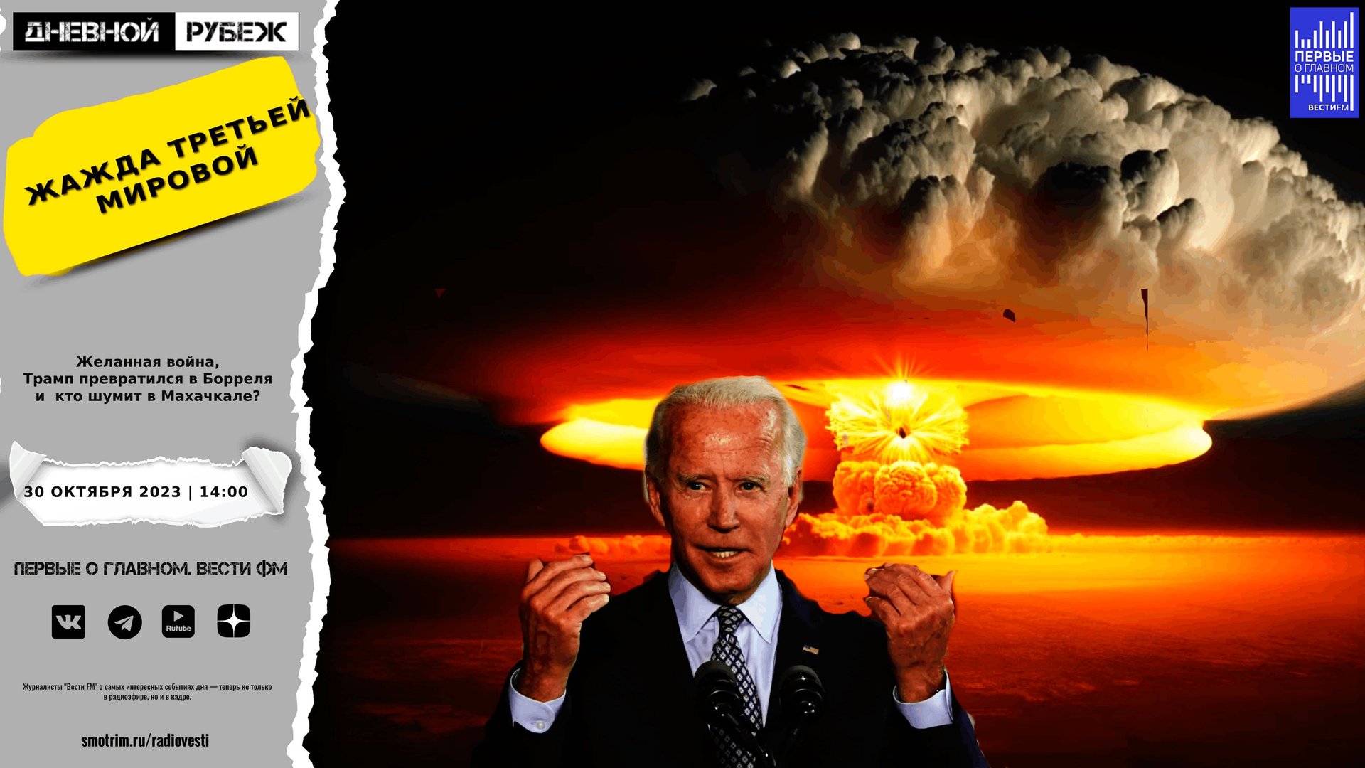 #дневнойрубеж #первыеоглавном #сво #донбасс #спецоперация #украина #израиль #цхал #палестина #трамп #байден #война #ближнийвосток #махачкала #антисемитизм #аэропорт Желанная война, Трамп превратился в Борреля и кто шумит в Махачкале? ?Подписывайтесь на Telegram канал - Первые о главном: https://t.me/vestifmfirst ?Подписывайтесь на Rutube канал - Первые о главном: https://rutube.ru/channel/24115140/ ?Подписывайтесь на VK канал - Первые о главном: https://vk.com/first.vestifm ?Подписывайтесь на ДЗЕН канал - Первые о главном: https://zen.yandex.ru/id/5fc4960a799d1b24b5be5189 ?Подписывайтесь на Telegram канал - ВестиFM+: https://t.me/s/vestifmplus СМОТРИТЕ НАС НА ПЛОЩАДКЕ СМОТРИМ: https://smotrim.ru/channel/365
