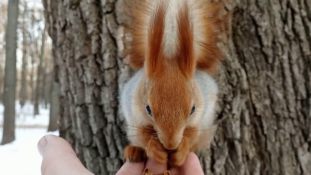 Кормлю трёх белок. Длинноухого, Рыжую и Того Самого бельчонка