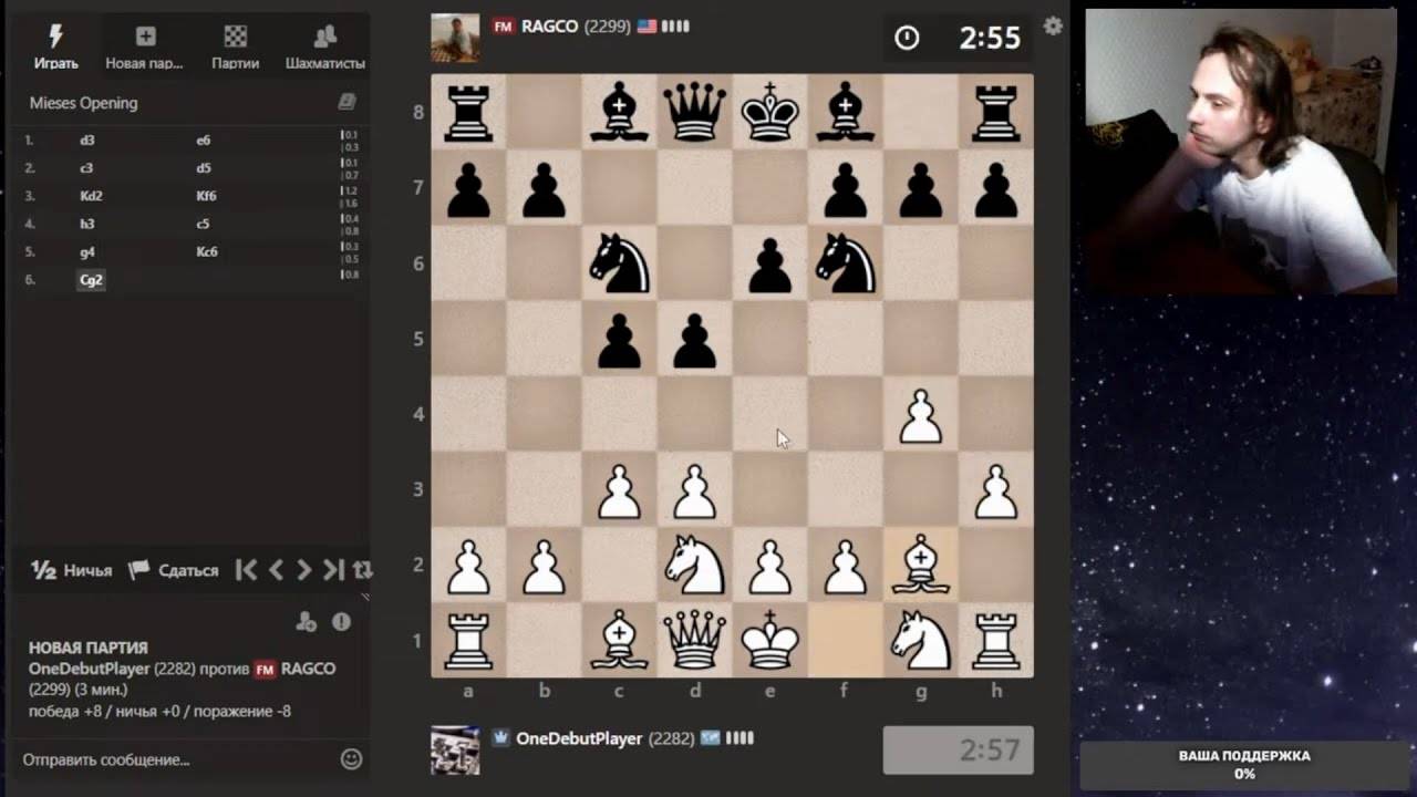 Друзья, всем привет. Партия со стрима, представляю вашему вниманию. Шахматы. Блиц 3+0 на chess.com. Если интересно, - подписывайтесь на канал, ставьте лайки, оставляйте комментарии. Поддержка через: DonationAlerts: https://www.donationalerts.com/r/onedebutplayer Бусти: https://boosty.to/onedebutplayer/donate Donatepay: https://new.donatepay.ru/@1272445 Плейлист "Дебют Эльшада против титулованных шахматистов." Youtube: https://youtube.com/playlist?list=PLjTlNmwodudeLbFWUJSc_zIlReTsRqZ8K Плейлист "Дебют Эльшада против титулованных шахматистов." RuTube: https://rutube.ru/plst/1164791