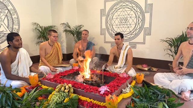 Огненные ведические ягьи в Шридхам Майапуре, Западная Бенгалия, Индия.