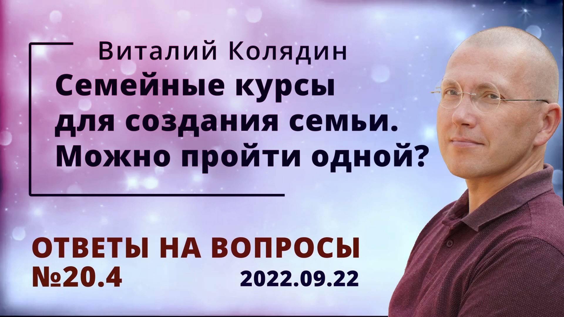 Ответы на вопросы №20.4 Кому нужны семейные курсы для создания семьи. Виталий Колядин. 2022.09.22