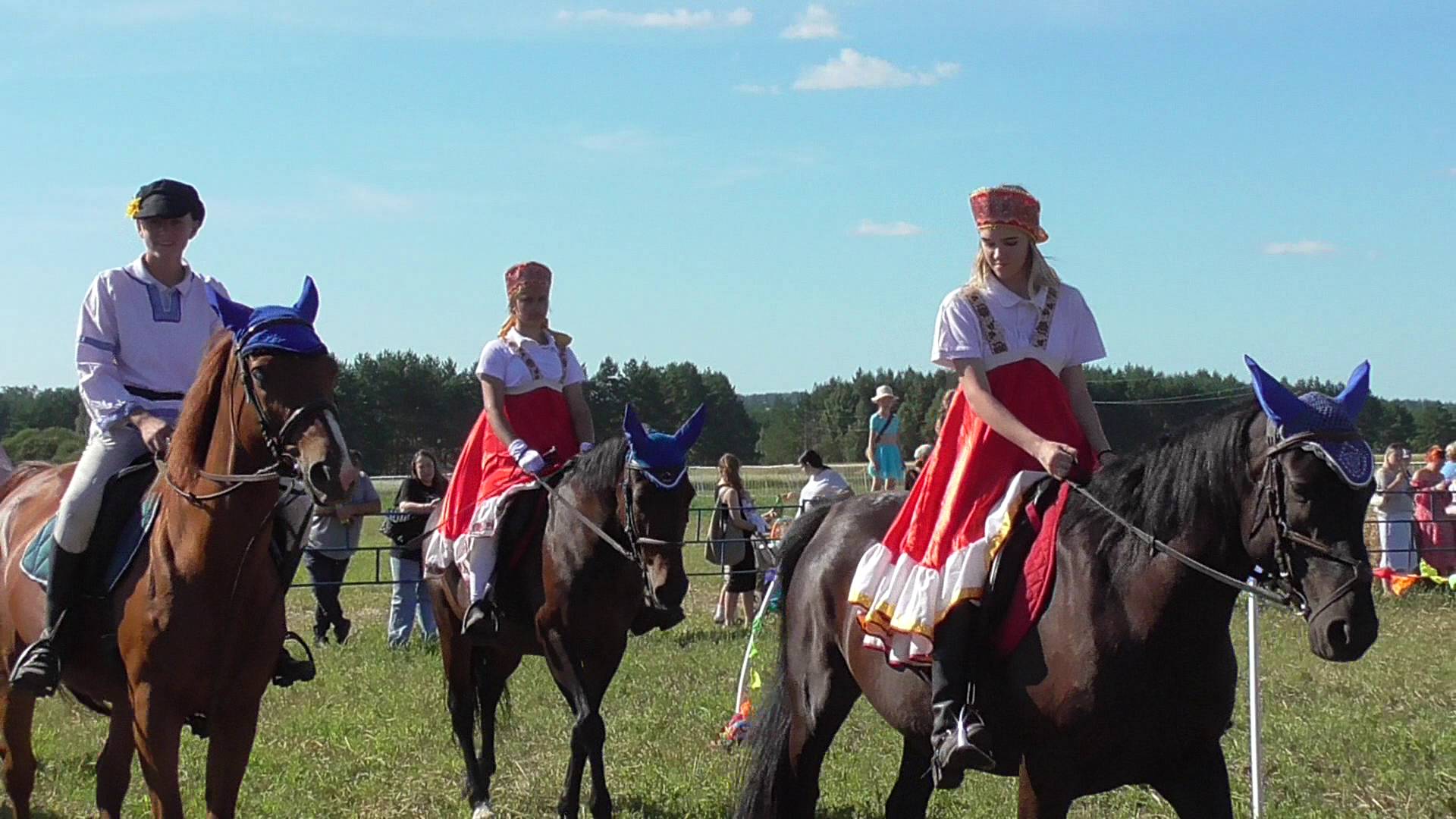Наездницы лошадей катаются на лошадях. Июль 2024 год