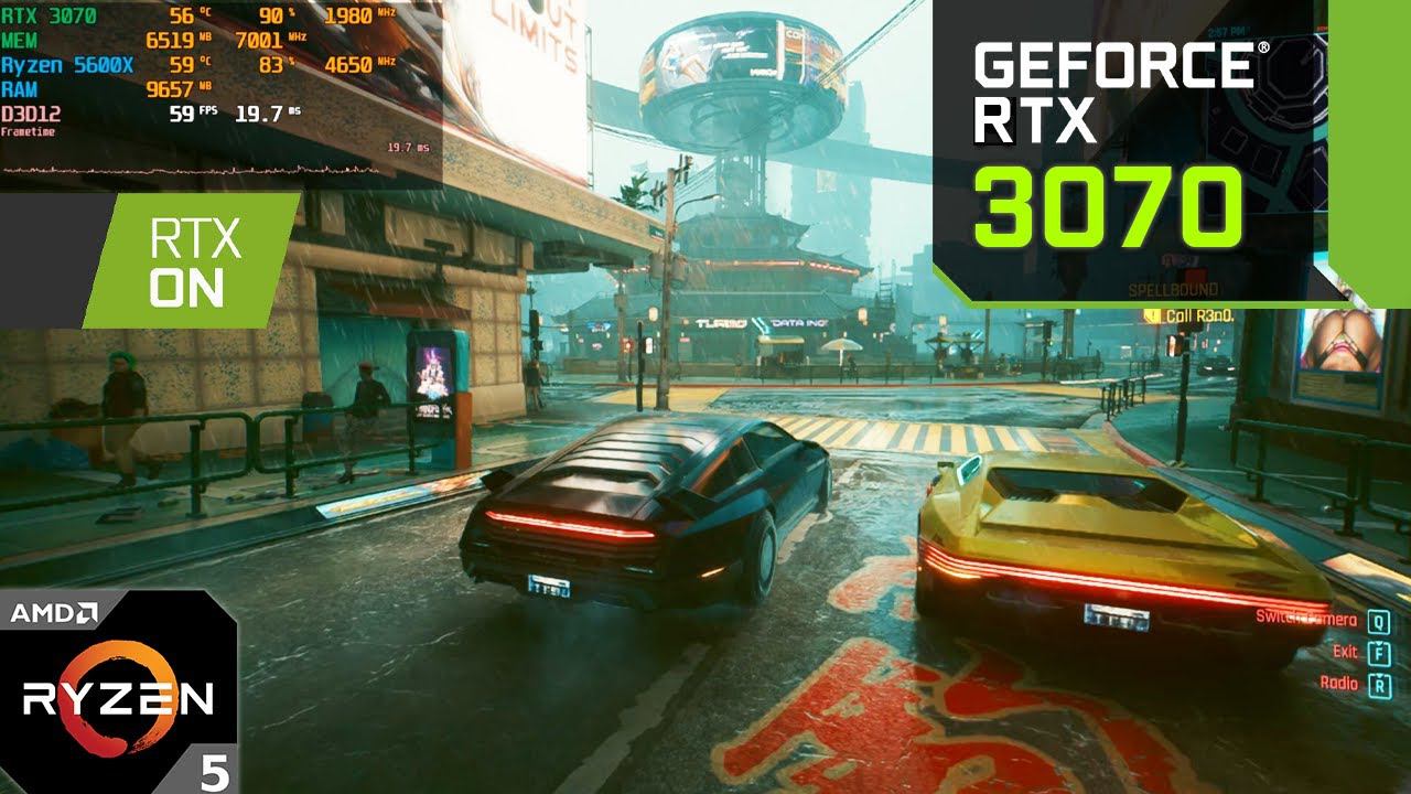 Cyberpunk 2077 : RTX 3070 8GB + Ryzen 5600X : 1080p Ultra Graphics, RTX ON