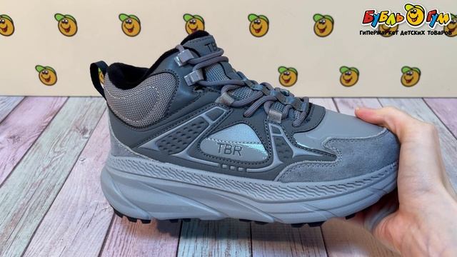 330641 Кроссовки TIBURON утепленные на шнуровке со вставками разной текстуры серые