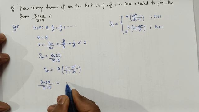 Example 13 How many terms of the G.P. 3, 3/2, 3/4 , , ,... are needed to give the sum 3069/512 ?