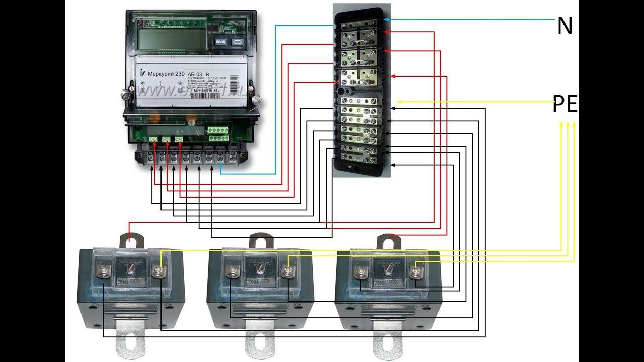 Подключение трехфазного счетчика через трансформаторы тока.