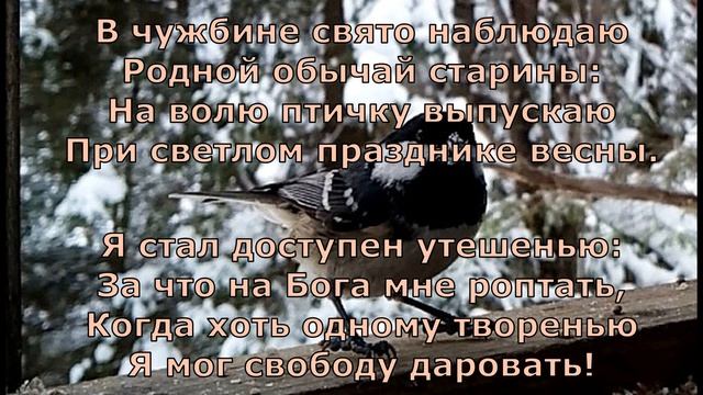 Поэты 19 века. Стихотворение А.С.Пушкина "Птичка". 1823 г. Фотография Е. Шавриной. Пермский край. Музыка - классическая музыка без АП, свободный доступ в интернете. * Чужбина - чужая сторона, земля. *Обычай - унаследованный стереотипный способ поведения, который воспроизводится в определё1нном обществе и является привычным для его членов. * Утешенье - эмоциональное, психическое облегчение, испытываемое в горе, расстройстве в результате действия чего-либо успокаивающего. *Роптать- высказывать недовольство кем-либо, чем-либо, обиду на кого-либо, что-либо