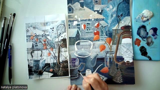 Мастер-класс по живописи " Натюрморт на подоконнике" часть 3