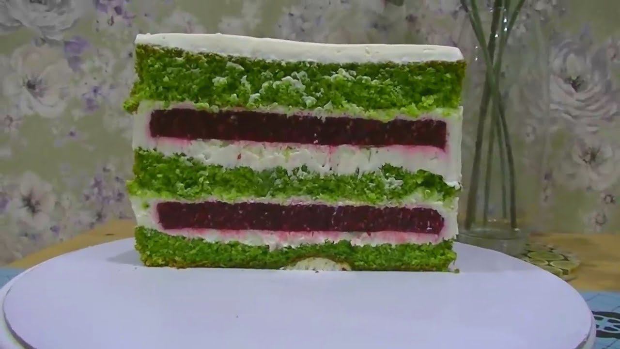 Торт ШПИНАТ МАЛИНА Бисквит со шпинатом