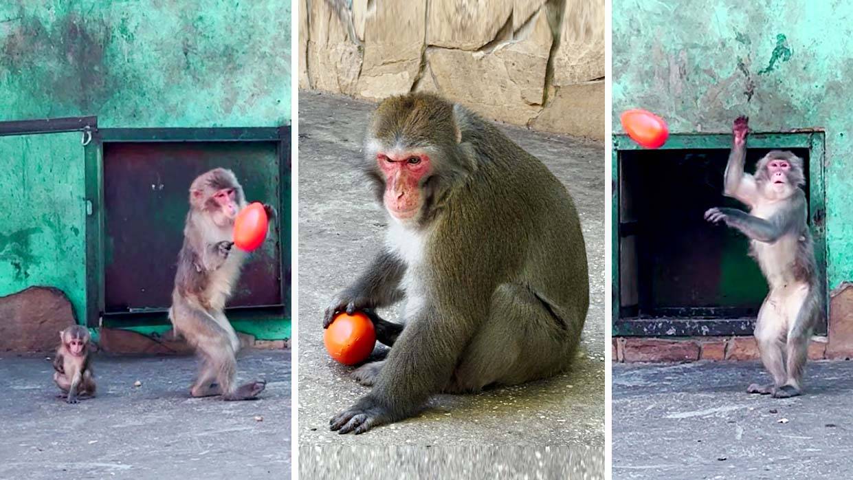 К макакам ПРИЛЕТЕЛО неуловимое ЯЙЦО! Батя уловил первый, а потом понеслось! Веселые игры обезьян!