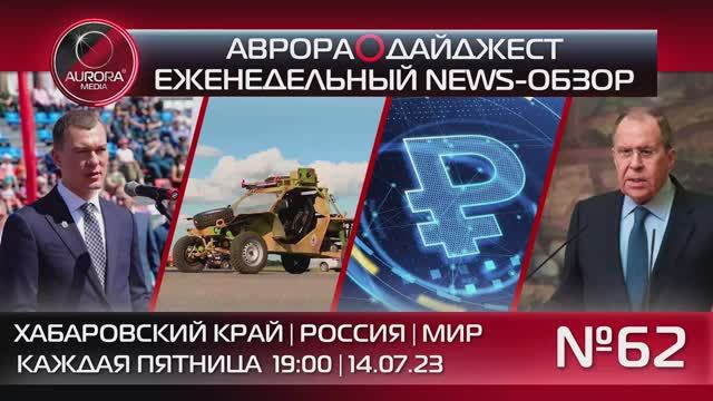 62-й еженедельный новостной видео-разбор АВРОРА⭕️ДАЙДЖЕСТ, сделанный Редакцией в формате: Хабаровский край | Россия | Мир, с ключевыми региональными, российскими и международными событиями: Содержание: ┃00:00┃▸ Вступление ┃00:30┃▸ В этом выпуске ⭕️ НОВОСТИ ХАБАРОВСКОГО КРАЯ: ┃01:24┃▸ В Хабаровском крае введён режим ЧС межрегионального уровня. ┃01:55┃▸ Из Краевой столицы в зону СВО отгружена новая партия багги «Ерофей». ┃02:34┃▸ Глава Амурского района доложил Губернатору об успешном развитии территории. ┃03:18┃▸ Хабаровск становится столицей торговли всего Дальнего Востока. ┃03:50┃▸ Объёмы строительства жилья в крае бьют рекорды. ┃04:19┃▸ «СКА-Хабаровск» начнёт новый сезон домашним матчем с «Шинником». ⭕️ НОВОСТИ РОССИИ: ┃04:41┃▸ Сергей Шойгу рассказал об успехах Российской Армии и провале контрнаступления ВСУ. ┃05:38┃▸ Украина взяла на себя ответственность за убийство капитана-подводника в Краснодаре. ┃06:10┃▸ Сергей Лавров предупредил Турцию из-за «боевиков азова» и поставок оружия Киеву. ┃06:49┃▸ Госдума приняла закон о внедрении в РФ цифрового рубля. ⭕️ НОВОСТИ МИРА: ┃07:29┃▸ Зеленский не смог добиться приглашения в НАТО на саммите в Вильнюсе. ┃08:04┃▸ Венгрия назвала единственное правильное решение на встрече стран НАТО. ┃08:31┃▸ Китай предупредил о решительном отпоре любым действиям Европейского Союза. || Актуальную информацию читайте: Сайт РИА АВРОРА⭕МЕДИА https://aurora.red/ || Телеграмм-экосистема А⭕М: | АВРОРА МЕДИА @aurora_media https://t.me/aurora_media | АВРОРА НОВОСТИ @news_aurora https://t.me/news_aurora | АВРОРА ХАБАРОВСК @khv_aurora https://t.me/khv_aurora | АВРОРА ЛАЙФ @life_aurora https://t.me/life_aurora | АВРОРА СПОРТ @sport_aurora https://t.me/sport_aurora | АВРОРА ГЕРЛС @girl_aurora https://t.me/girl_aurora | АВРОРА ХАЙТЕК @ht_aurora https://t.me/ht_aurora | АВРОРА ПЕРСОНЫ @people_aurora https://t.me/people_aurora | АВРОРА БЛОГ @media_aurora https://t.me/media_aurora || Aurora_Media: | Российское Информационное Агентство | +7(4212)900-900 media@auroragroup.info | +7(909)800-71-11 messenger #Хабаровск #хабаровск #новостихабаровска #АврораМедиа #аврорамедиа #аврорамедиахабаровск #СВО #сво #украина #россия #новости #МихаилДегтярёв #михаилдегтярёв #Ерофей #ерофей #СкаХабаровск #скахабаровск #мелбетперваялига #СергейШойгу #сергейшойгу #шойгу #НАТО #натоукраина #нато #натоукраїна #Цифровойрубль #цифровойрубль #цифровойрубль2023 #цифровойрубльвроссии #чтотакоецифровойрубль #СтаниславРжицкий #станиславржицкий #АЗОВ #азов