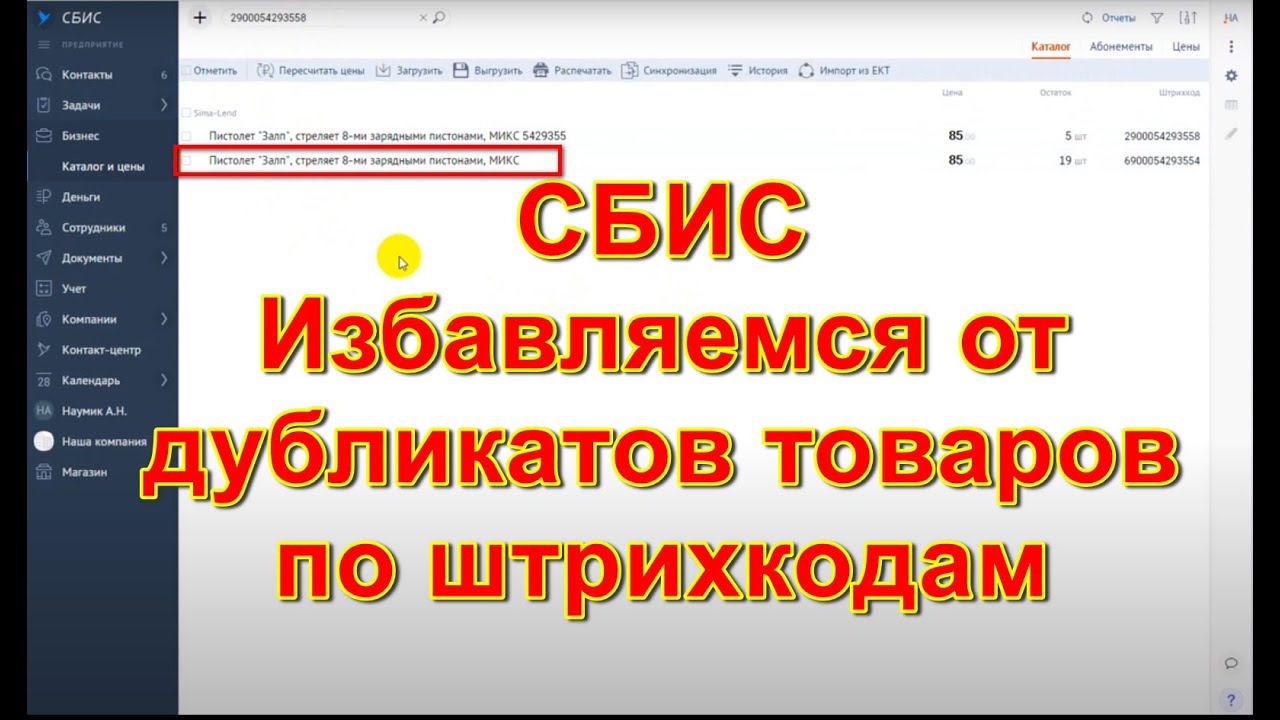 СБИС. Дубликаты товаров, штрихкодов. Проверка каталога