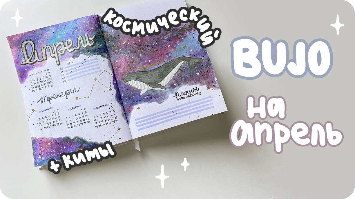 Космическое оформление на апрель 2023 / Весенний разворот ежедневника bullet journal