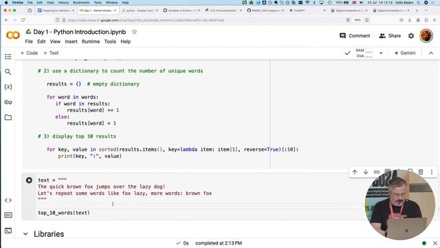 🎤 Workshop “Python essentials and text analysis with NLTK” by Uldis Bojārs at the Baltic Summer School of Digital Humanities BSSDH 2024, hosted by the National Library of Latvia on July 22-26, 2024. https://www.digitalhumanities.lv/bssdh/2024/about/ Workshop 1-A, Part 2 Thank you to our supporters: 🌵 National Research Programme "Digital Humanities" Project "Towards Development of Open and FAIR Digital Humanities Ecosystem in Latvia", No. VPP-IZM-DH-2022/1-0002 http://www.digitalhumanities.lv/projects/DHELI-en/ 🌵 State Cultural Capital Foundation Project "Baltic Summer School of Digital Humanities 2024" 🌵 Common Language Resources and Technology Infrastructure https://www.clarin.eu/ https://clarin.lv/lv/ 🌵 EU Recovery and Resilience Facility project Language Technology Initiative No. 2.3.1.1.i.0/1/22/I/CFLA/002 🌐 National Library of Latvia https://www.lnb.lv/ 🌐 University of Latvia https://www.lu.lv/ 🌐 Institute of Literature, Folklore, and Art http://lulfmi.lv/ 🌐 Digital Humanities in Latvia http://www.digitalhumanities.lv/home/