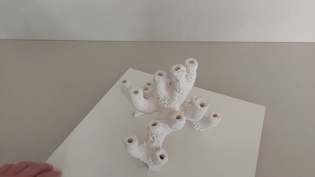 Декорация цельная, размером 24х20х22 см. Изделие выполнено в виде скелета жёсткого коралла (рога),с отверстиями в торцах под ножки плашек. Отлично подойдёт для малых, средних и как дополнение к уже существующему скейпу в больших аквариумах, а так же как элемент комплекта из нескольких декорации,