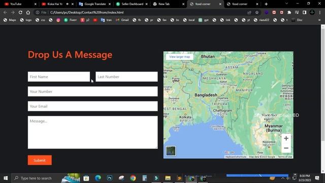 contact us page, google map , message us page design by html css