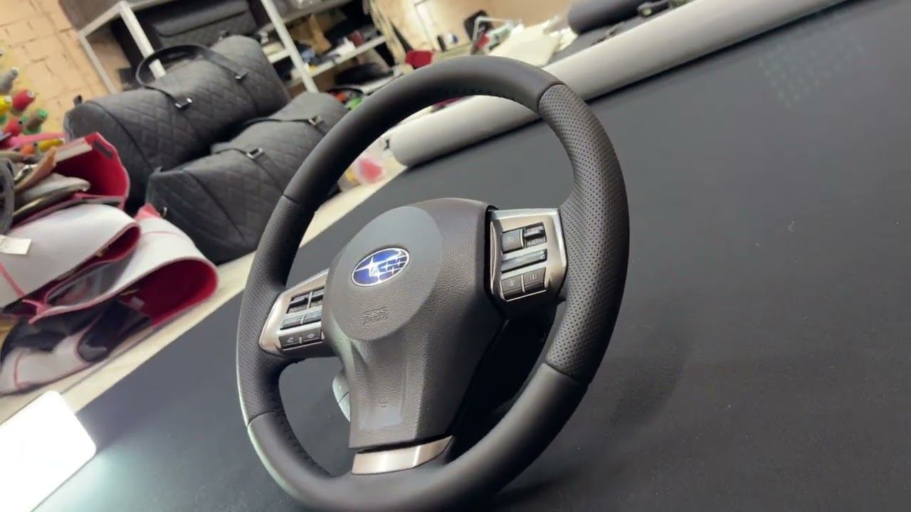 Все наши работы: https://vinylkazan.ru/portfolio/ Экокожа постепенно вытесняет натуральную) Мы не против, ведь качество обоих материалов - на высоте! Subaru Forester Перетяжка обода руля в экокожу со вставками из псевдоперфорации.