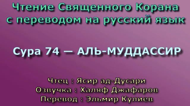 Чтение^Озвучка - Корана Чтец: Ясир ад-Дусари Озвучка: Халяф Джафаров Перевод: Эльмир Кулиев Источник YouTube канал: " Священный Коран "