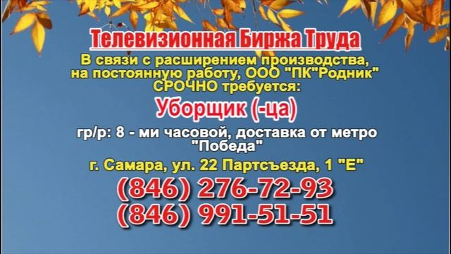 Вакансии и телефоны прямых работодателей в специализированной программе по трудоустройству "Телевизионная Биржа Труда" - г.САМАРА, г.ТОЛЬЯТТИ