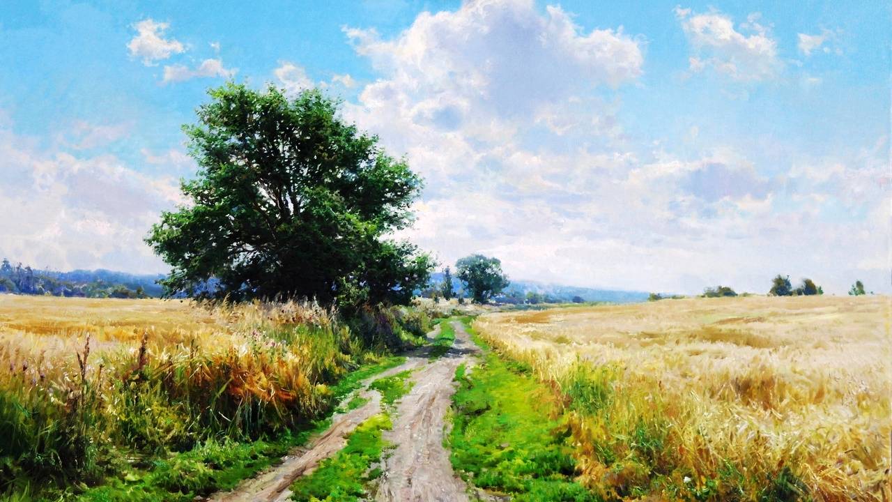 Летние пейзажи художника Владимира Давыденко Художник Владимир Валерьевич Давыденко родился в 1966 году в Липецке. Тяга к живописи родилась у художника вместе с его собственным рождением. Он начал рисовать уже в детском саду. Его творческий путь насыщен: художественная школа №1 в Липецке, училище по профессии “художник оформитель”. Работал в Будапеште по приглашению венгерской фирмы, занимающейся продажей произведений искусств, заказы для зарубежных коллекционеров. В своих произведениях художник продолжает традиции русской реалистической школы и передвижников – Репина, Крамского, Левитана, Шишкина. С раннего периода творчества Владимир Давыденко уделял большое внимание изучению наследия этих мастеров и осваивал их живописные приемы. Постоянный участник областных, региональных и всероссийских, а также персональных выставок. В настоящее время живёт в Москве. Картины художника находятся в собственности многих известных липецких деятелей и предпринимателей, а также в частных коллекциях Англии, Германии, Японии, Венгрии Все материалы получены в свободном доступе из интернета. Приятного просмотра!