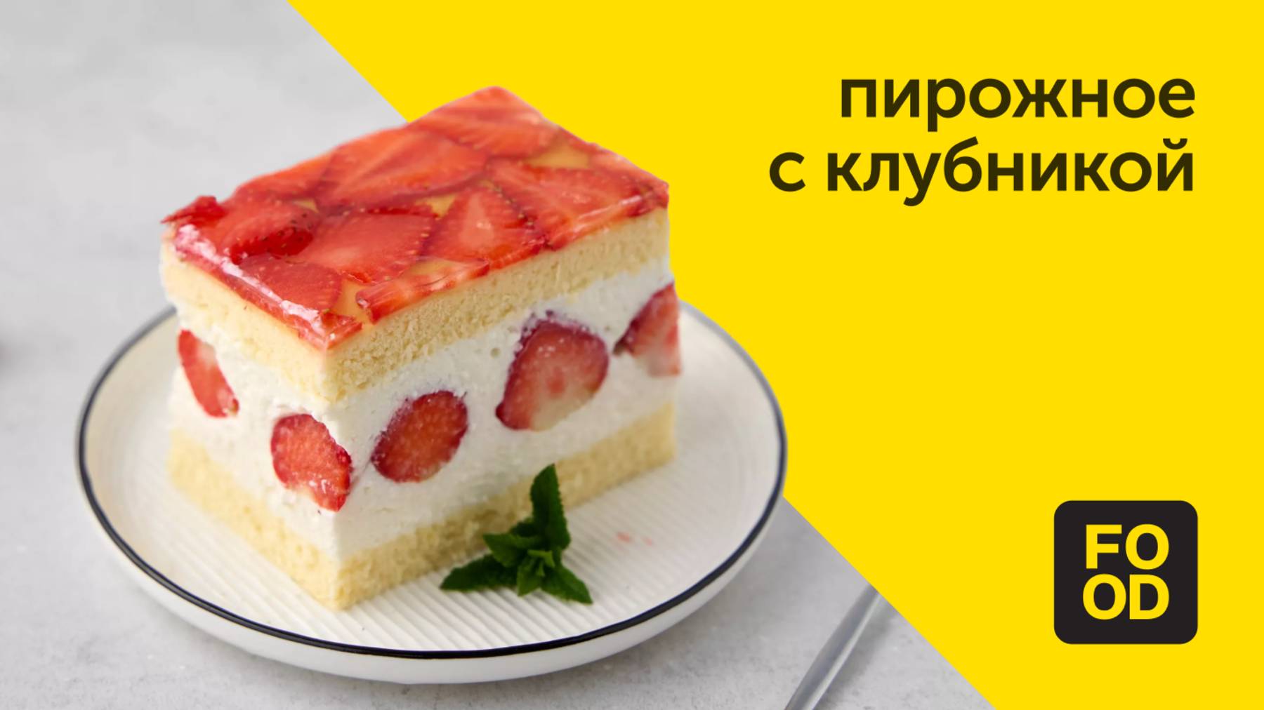 Пирожное с клубникой Для коржей и начинки: • Сахар — 200 г • Пшеничная мука хлебопекарная — 3 ст. л. • Крахмал — 5 ст. л. • Яйца — 3 шт. • Вода — 100 мл • Разрыхлитель теста — 1 ч. л. • Клубника — 4 стакана • Творог — 500 г • Йогурт натуральный — 500 г • Сливки 33% жирности — 1 стакан • Лимонный сок — 80 мл • Порошковый желатин — 5 ч. л. Для украшения: • Клубника — 2 стакана • Порошковый желатин — 5 ч. л. • Вода — 1 стакан • Сахар — 1 ч. л. • Лимонная кислота — 1 г Пошаговый рецепт вы найдёте по ссылке: https://clck.ru/3MYnwG