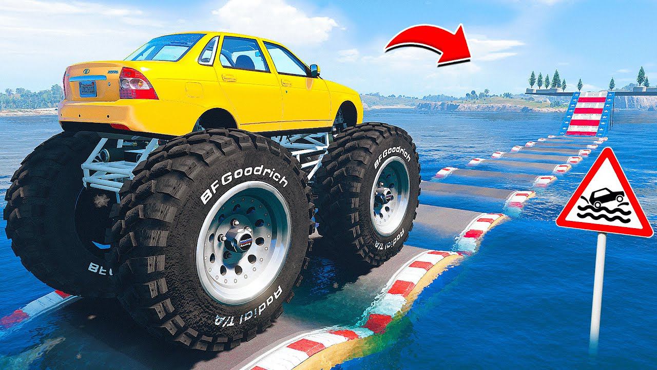 ПРОЕХАЛ ВОДНЫЕ КОЧКИ на ГИГАНТСКОЙ ЛАДЕ ПРИОРЕ в ГТА 5 МОДЫ - ЭКСПЕРИМЕНТЫ в GTA 5 MODS