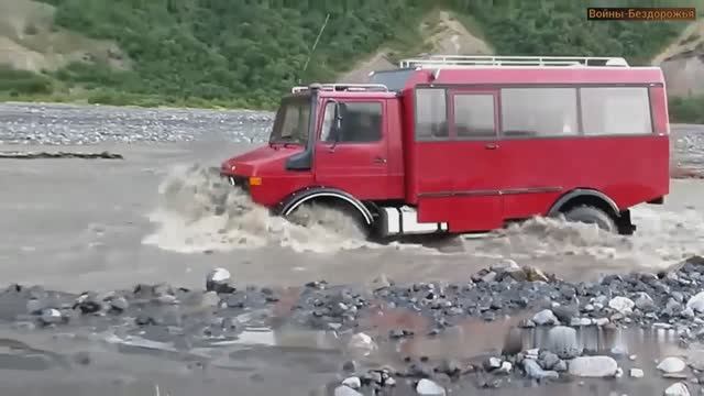 Против течения на Грузовике Mercedes-Benz Unimog.