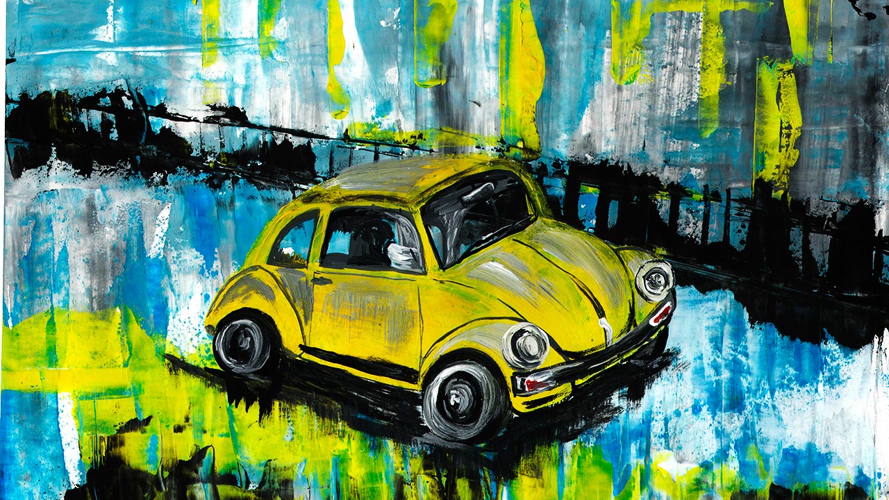 Как нарисовать городской пейзаж. Интерьерная картина, машина в городе. Рисуем осень в городе.