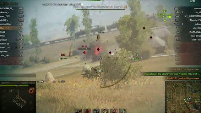 Этот бой на сайте wotreplays.ru : http://wotreplays.ru/site/4858603#prohorovka-kiaas-pz_kpfw_i_ausf_c Описание: Воин, Основной калибр. Нанёс почти 1600 урона, ближайший по урону союзник - 197 хп снял. В конце занятно забрал с кассеты трёх противников.
