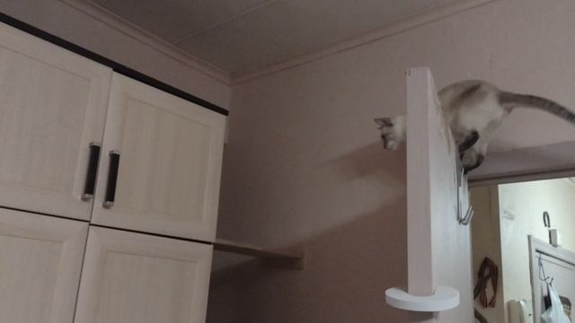 Как котенок хотел на шкаф, а потом увидел картину с тайским котом