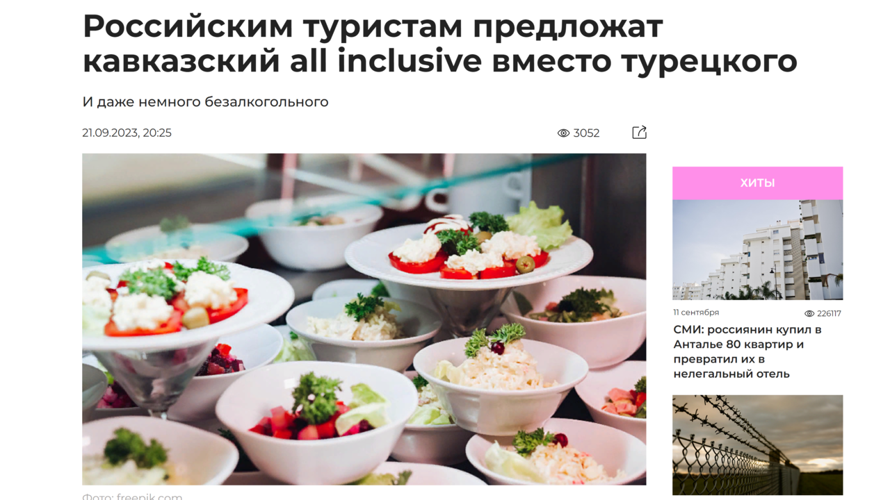 Новости туризма 21/09/2023 Российским туристам предложат кавказский AI вместо турецкого #туризм