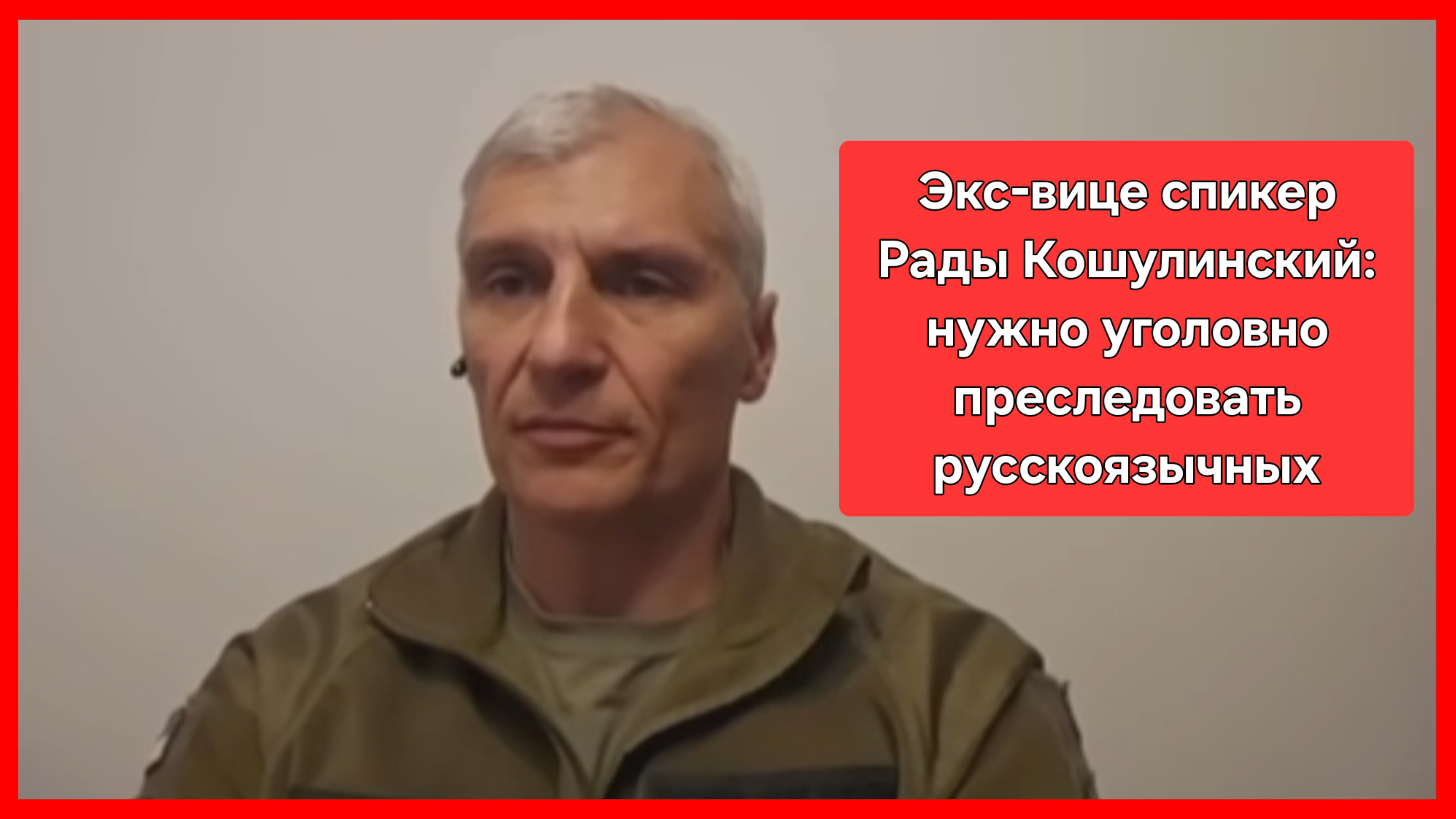 Экс-вице-спикер Рады, нацист сержант ВСУ Кошулинский предлагает полностью поразить в правах русскоязычное население Украины, не давать образование, работу, уголовно преследовать русскоязычных. Говорите, говорите, побольше говорите. Материалов для трибунала мало не бывает. Друзья, подписывайтесь на канал, ставьте "нравится", если видео пришлось вам по душе. Лайк это замечательный эквивалент слову "спасибо!" Здесь вы в разных плейлистах услышите истории; "О жизни и о любви", "Вера Надежда Любовь"- православные истории, "Моя Россия"- классные песни о городах России, "Zа Россию!"- станете свидетелями исторических событий, где Россия одерживает Победу над врагами. Всем добра и счастья!