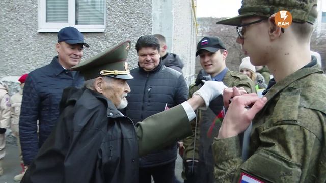 Ветерану Великой Отечественной войны, 99-летнему екатеринбуржцу Дмитрию Суворову мэр города Алексей Орлов и консул Республики Беларусь Сергей Чичук вручили фрагмент картины, на которой он изображен. Суворов после войны был одним из натурщиков для этой картины, на сегодняшний день он последний, кто еще жив среди героев полотна. Ветеран спустился во дворе дома, где его кроме мэра и консула приветствовали учащиеся и педагоги военно-патриотического клуба «Ритм» ДЮЦ «Юность», патриотического клуба «Кречет» при школе № 183, юнармейского отряда «Святогор» КМЖ «Сфера», юнармейского отряда «Альфа» школы № 14, отряда юнармии «Авиатор» школы № 92 и патриотического отряда «Витязь» молодежного пространства «Вышка» ДЮЦ «Калейдоскоп».