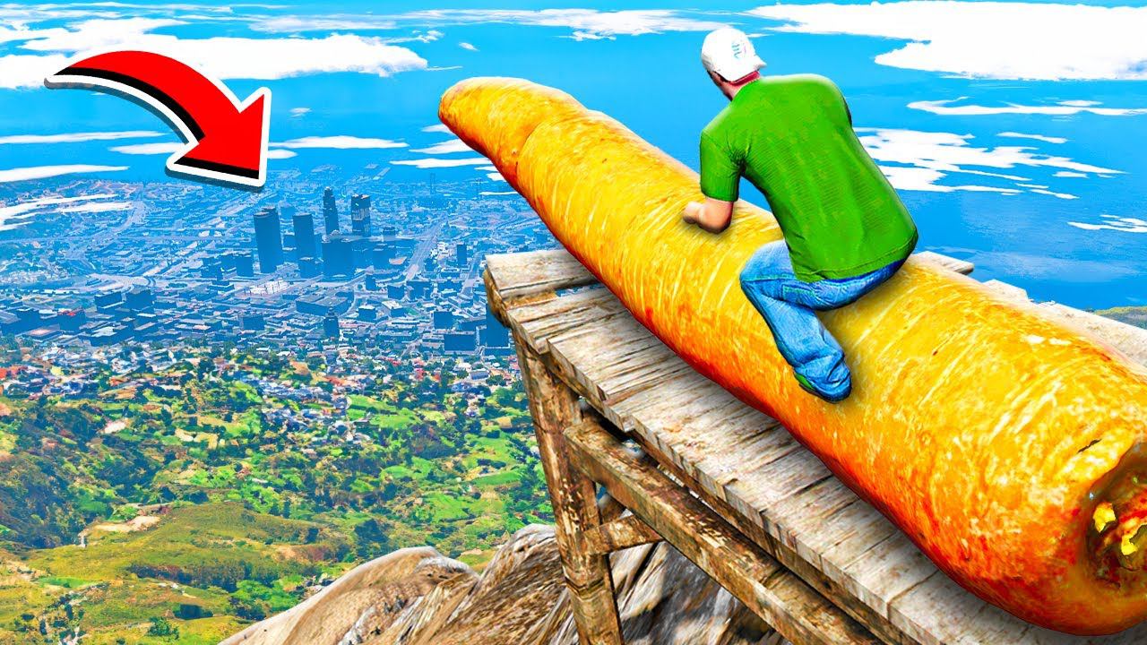 СБРОСИЛ ГИГАНТСКУЮ МОРКОВКУ С ОБРЫВА ГТА 5 МОДЫ РАЙЛЮХА